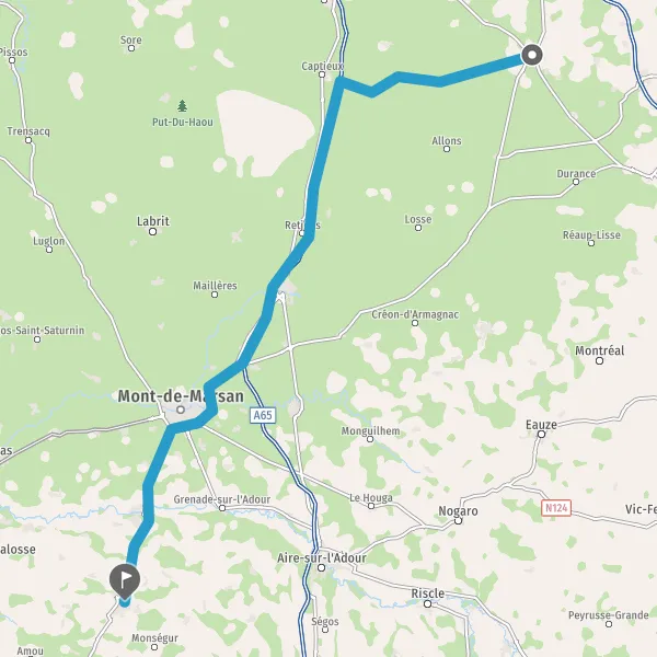 Au rond-point, prendre la 2ème sortie sur D933 (Route des Landes) et continuer sur 41 kilomètres