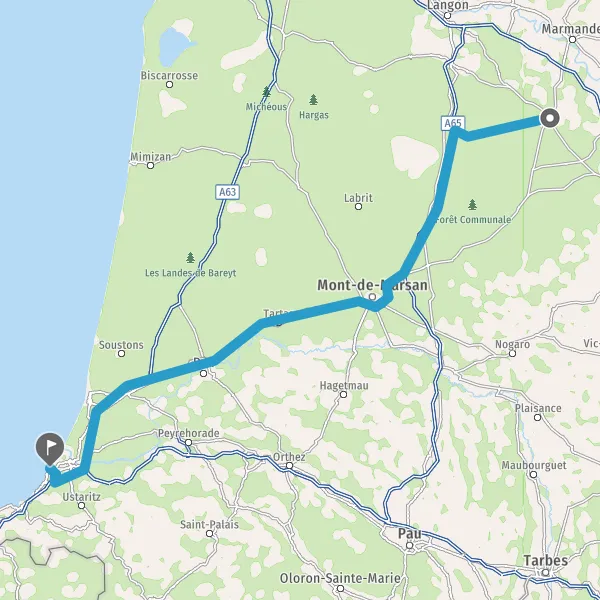 Prendre à droite et rejoindre A65 E7. Continuer sur 41 kilomètres