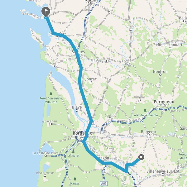 Continuer et rejoindre A837 E602. Continuer sur 34 kilomètres
