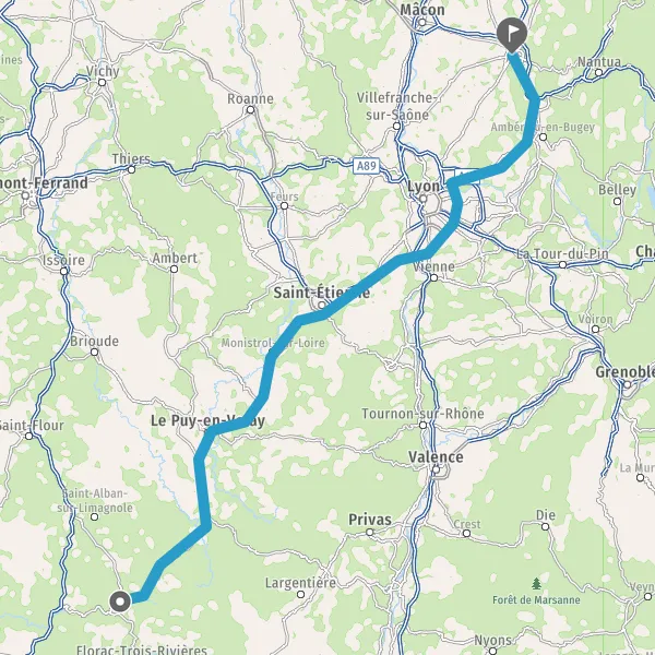 Tourner légèrement à gauche sur N88 (Quartier du Pont d'Allier) et continuer sur 30 kilomètres