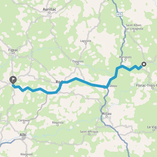 Continuer D911 D997 (Route de Rieupeyroux) sur 31 kilomètres