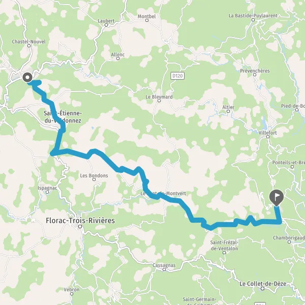 Tourner légèrement à droite sur D998 (Route de Génolhac) et continuer sur 2,7 kilomètres