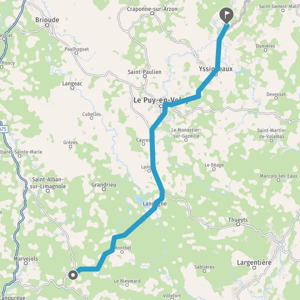 Tourner légèrement à gauche sur N88 (Quartier du Pont d'Allier) et continuer sur 30 kilomètres