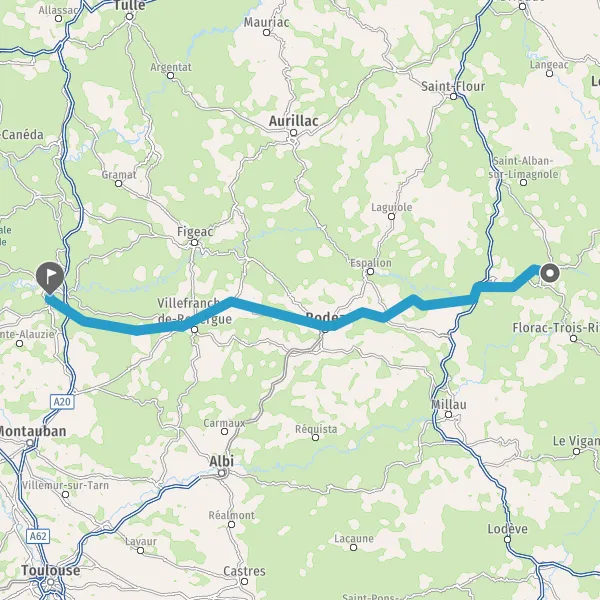 Tourner légèrement à droite sur D1 (Avenue du Rouergue) et continuer sur 2,7 kilomètres