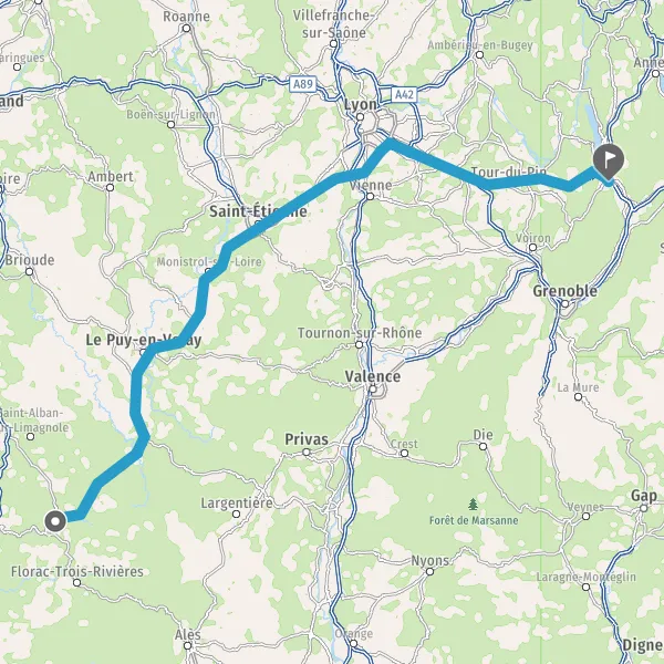 Prendre à droite et rejoindre A43 E711 E70. Continuer sur 34 kilomètres
