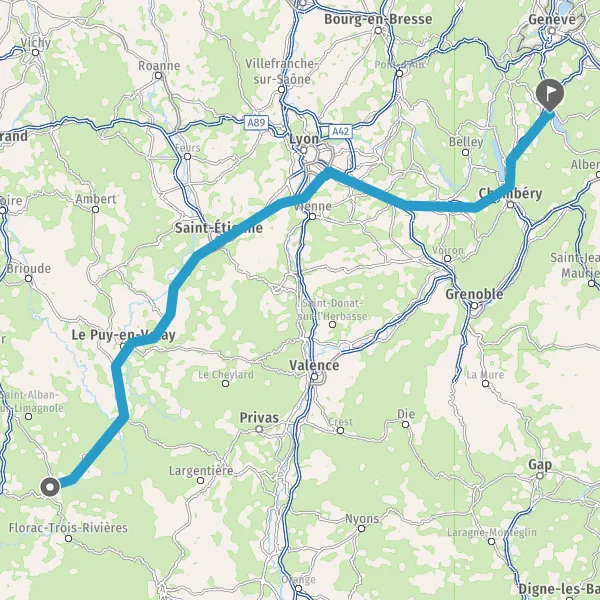 Prendre à droite et rejoindre A43 E711 E70. Continuer sur 34 kilomètres