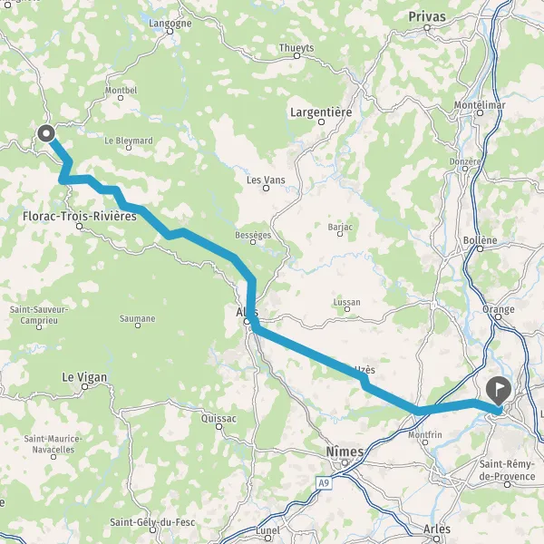 Au rond-point, prendre la 2ème sortie sur N100 (Route de Nîmes) et continuer sur 1 kilomètre