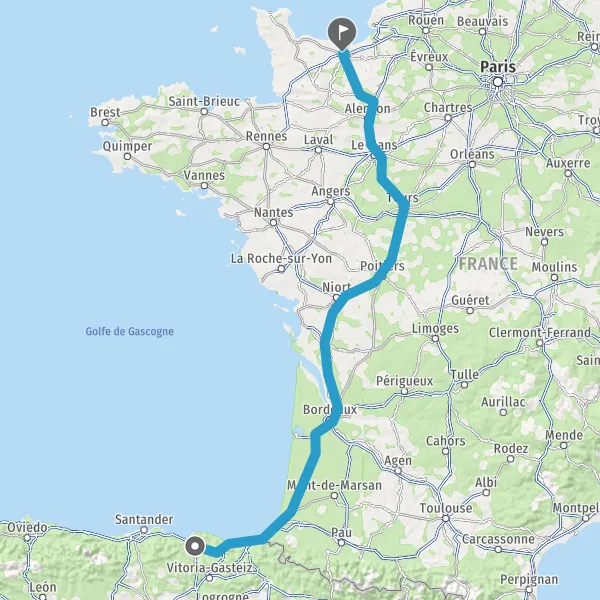 Continuer E5 (L'Aquitaine) sur 328 kilomètres