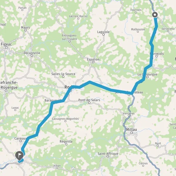 Au rond-point, prendre la 1ère sortie sur N88 et continuer sur 32 kilomètres