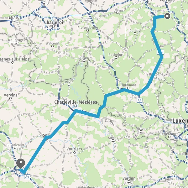 Prendre à droite et rejoindre A4 E411. Continuer sur 14 kilomètres