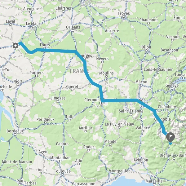 Prendre à droite et rejoindre A85. Continuer sur 205 kilomètres