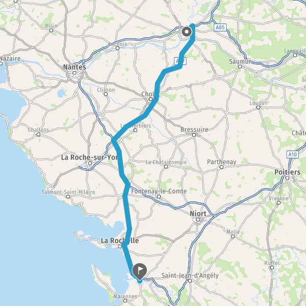 Prendre à gauche et rejoindre A83 E3. Continuer sur 33 kilomètres