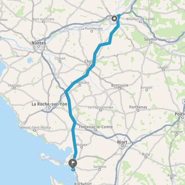 Prendre à gauche et rejoindre A83 E3. Continuer sur 33 kilomètres