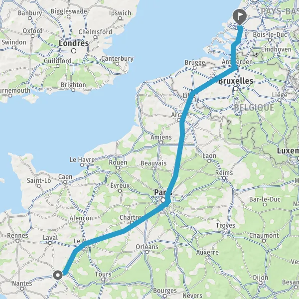 Continuer A11 E60 E501 sur 236 kilomètres