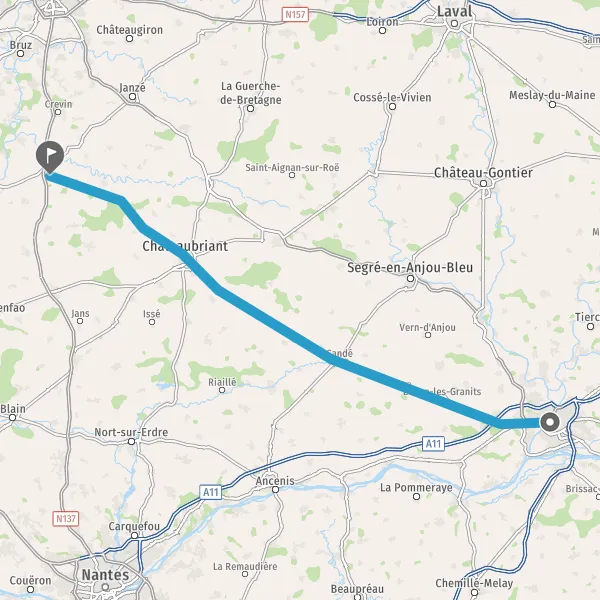 Tourner légèrement à droite sur D963 (Route de Châteaubriant) et continuer sur 4,3 kilomètres
