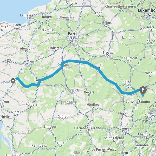 | Distance en voiture | 543 km à 645 km |