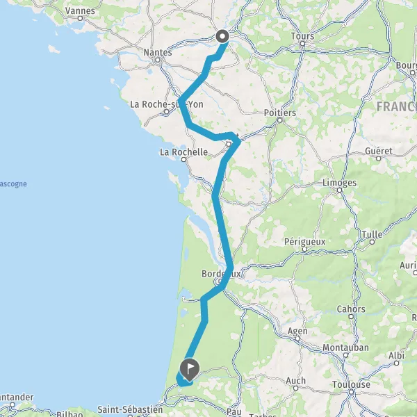 Prendre à droite et rejoindre A63. Continuer sur 139 kilomètres