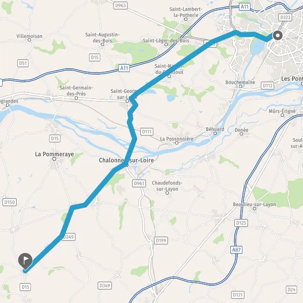 Au rond-point, prendre la 2ème sortie sur D961 (Route de Chalonnes) et continuer sur 5,4 kilomètres