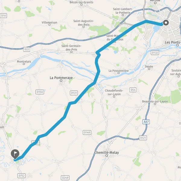 Au rond-point, prendre la 2ème sortie sur D961 (Route de Chalonnes) et continuer sur 5,4 kilomètres