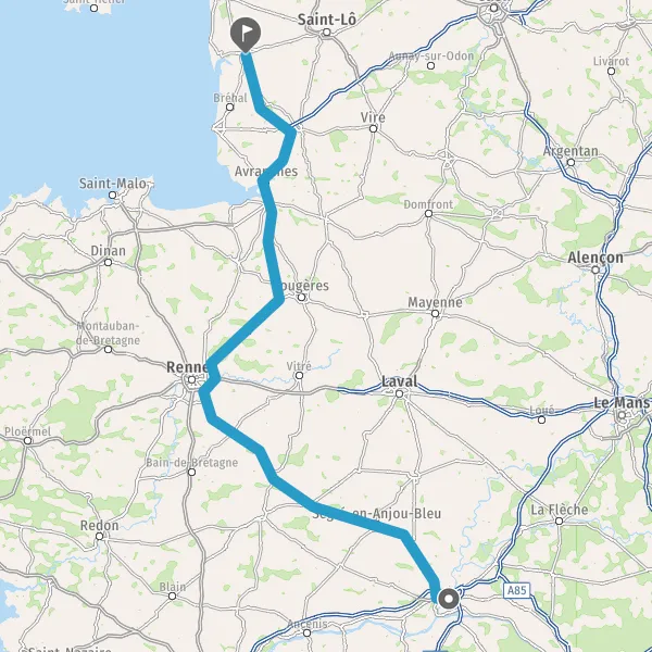 Prendre à droite et rejoindre A84 E3. Continuer sur 73 kilomètres