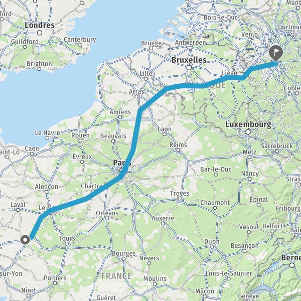 Prendre à droite et rejoindre A11 E60 E501. Continuer sur 234 kilomètres