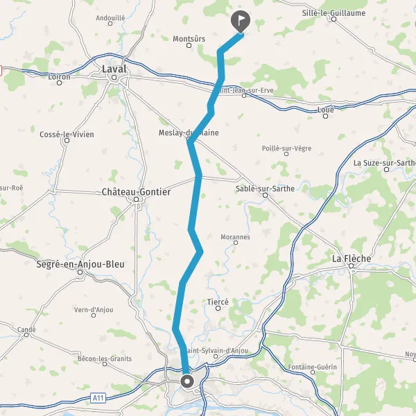 Au rond-point, prendre la 3ème sortie sur Rue de Laval et continuer sur 850 mètres