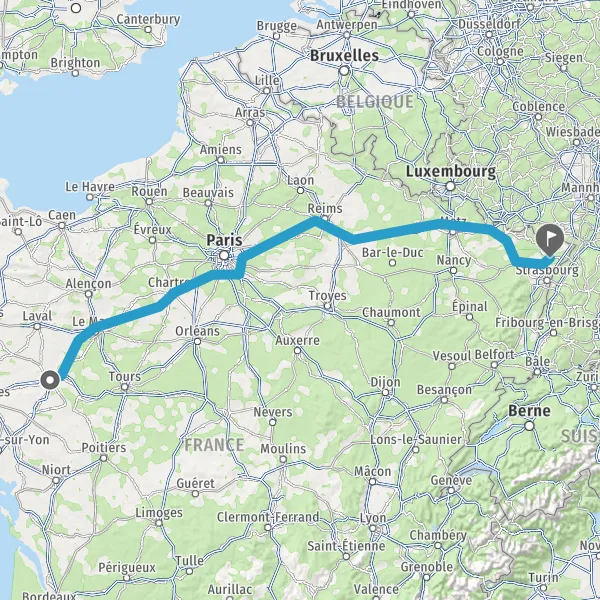 Prendre à droite et rejoindre A11 E60 E501. Continuer sur 234 kilomètres