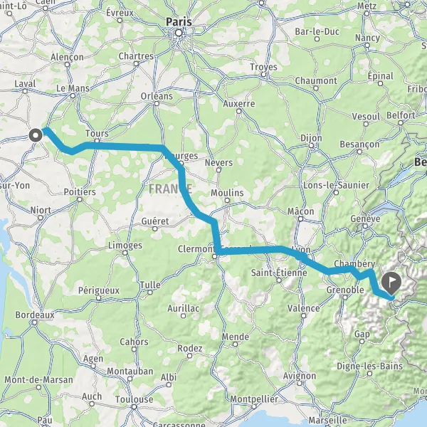 Prendre à droite et rejoindre A85. Continuer sur 205 kilomètres