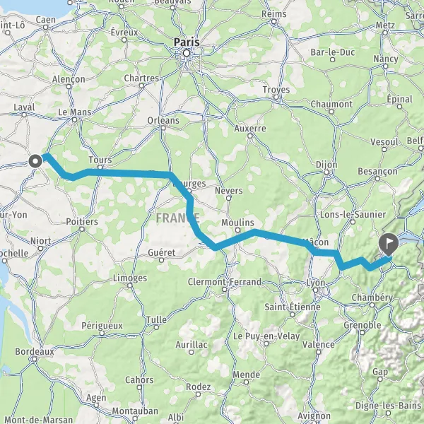Prendre à droite et rejoindre A85. Continuer sur 205 kilomètres
