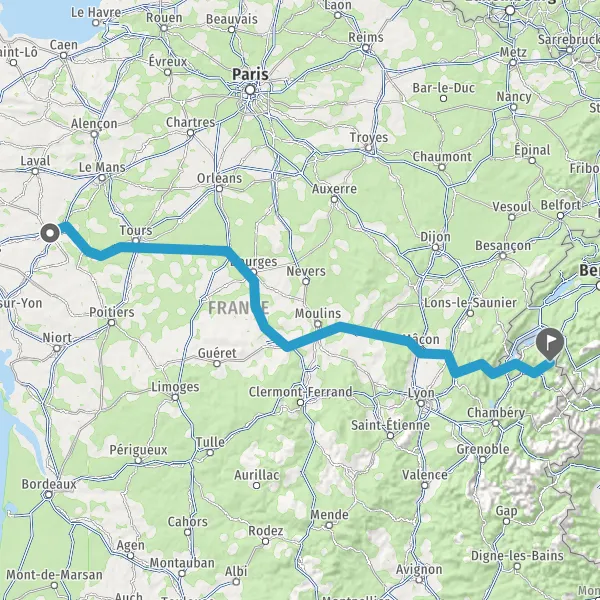Prendre à droite et rejoindre A85. Continuer sur 205 kilomètres
