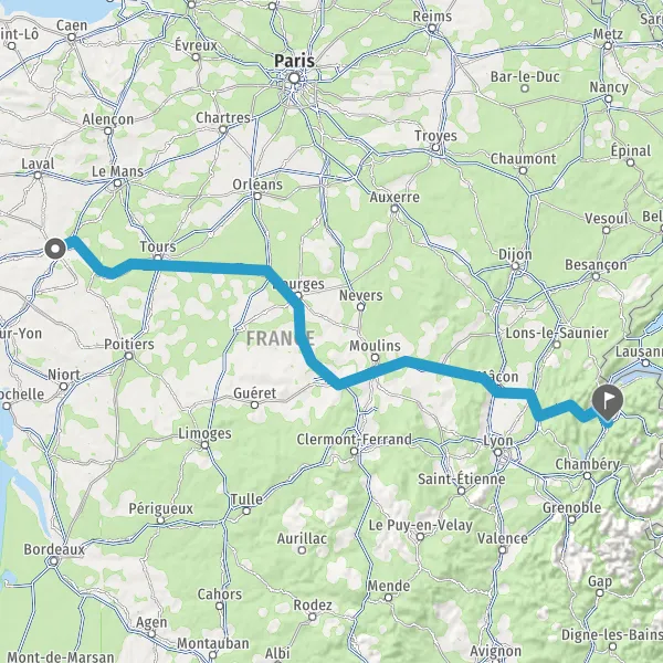 Prendre à droite et rejoindre A85. Continuer sur 205 kilomètres