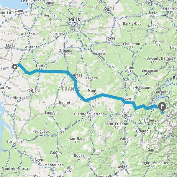 Prendre à droite et rejoindre A85. Continuer sur 205 kilomètres
