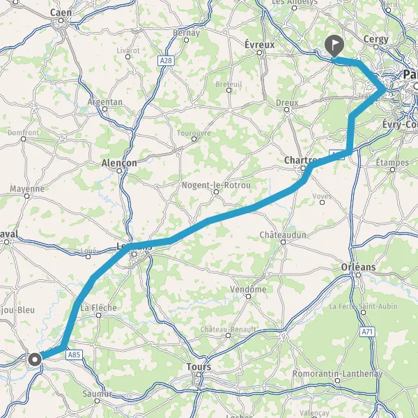 Continuer A11 E60 E501 sur 229 kilomètres