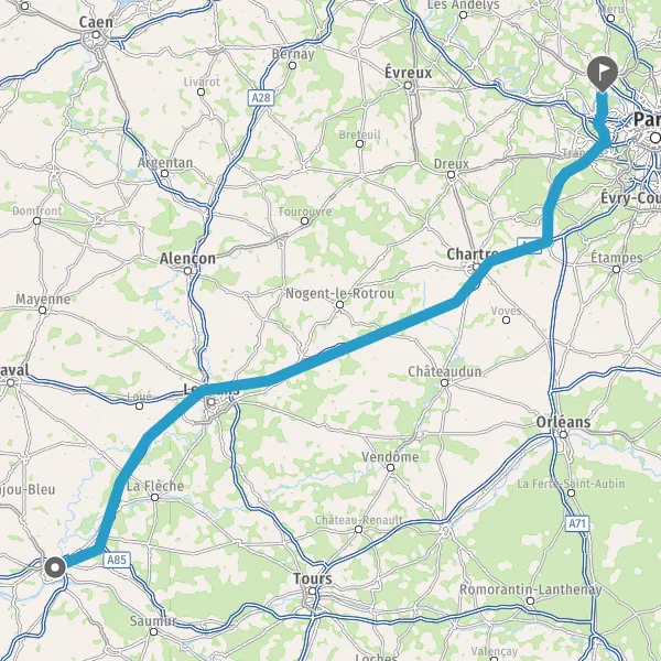 Continuer A11 E60 E501 sur 229 kilomètres