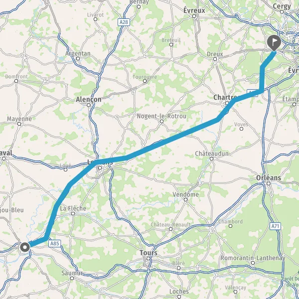 Prendre à droite et rejoindre A11 E60 E501. Continuer sur 226 kilomètres