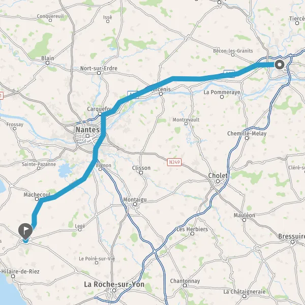 Au rond-point, prendre la 2ème sortie sur D58 (Rue de Bois-de-Céné) et continuer sur 280 mètres