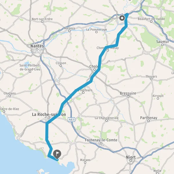 Prendre un ticket (Péage Beaulieu Sur Layon) Payer 12,40 € (Péage La Roche Sur Yon) 5,4 km