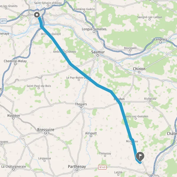 Prendre à droite et rejoindre D761 (Route de Doué). Continuer sur 5,4 kilomètres