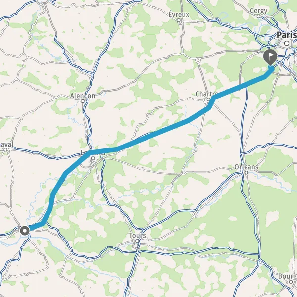 Prendre à droite et rejoindre A11 E60 E501. Continuer sur 234 kilomètres