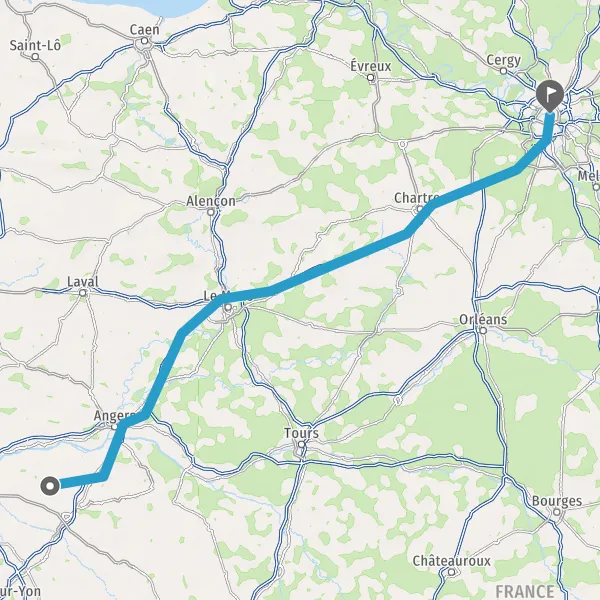 Prendre à droite et rejoindre A11 E60 E501. Continuer sur 234 kilomètres