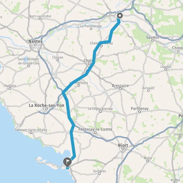 Prendre à gauche et rejoindre A83 E3. Continuer sur 33 kilomètres