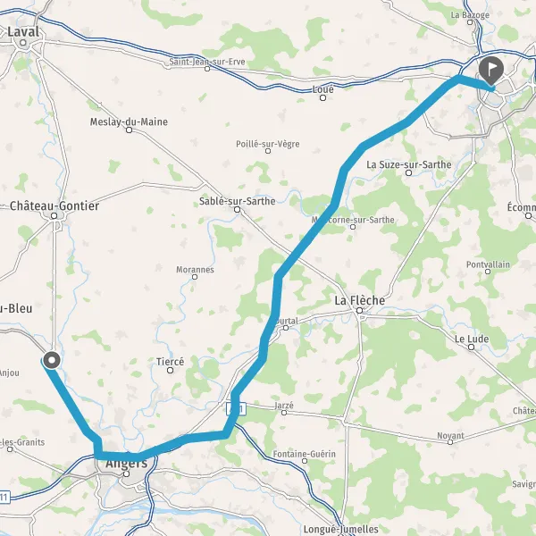Au rond-point, prendre la 2ème sortie sur Route d'Angers et continuer sur 700 mètres
