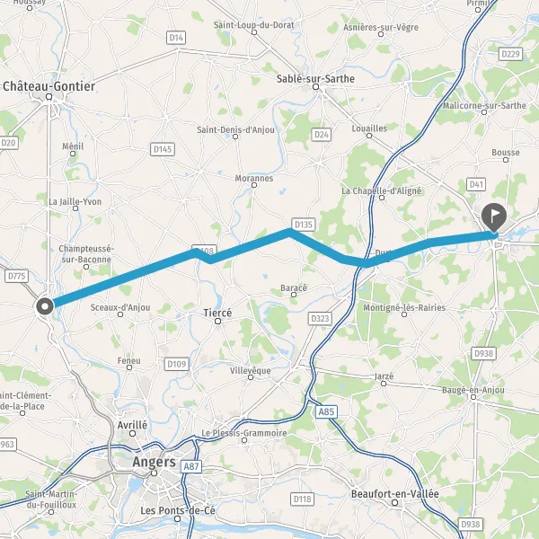 Au rond-point, prendre la 1ère sortie sur D859 (Route de Durtal) et continuer sur 7,3 kilomètres