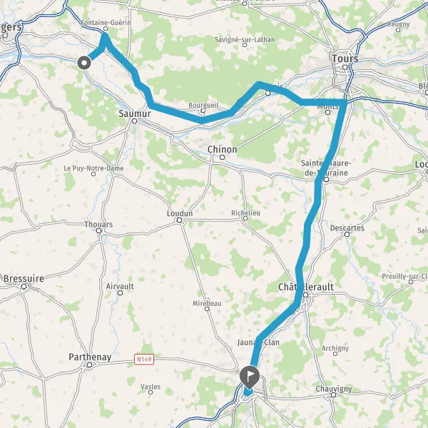 Au rond-point, prendre la 4ème sortie sur Rue de Saumur et continuer sur 3,1 kilomètres