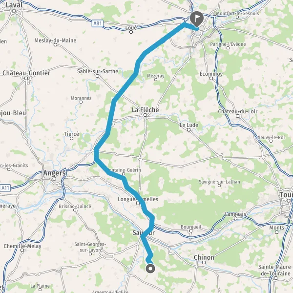 Continuer et rejoindre A85 E60. Continuer sur 36 kilomètres
