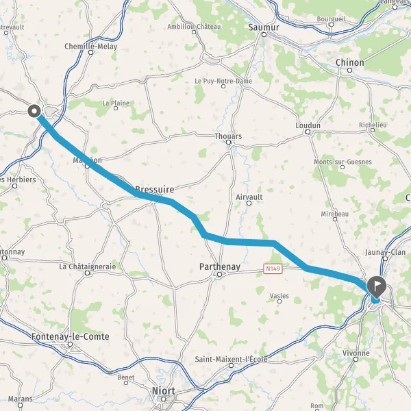 Tourner à gauche sur N149 E62 D27 (Route de Parthenay) et continuer sur 8,5 kilomètres