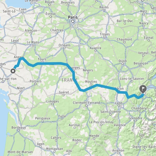Prendre à droite et rejoindre A85. Continuer sur 205 kilomètres