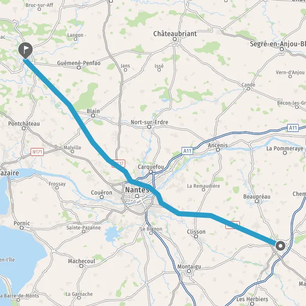 Au rond-point, prendre la 2ème sortie sur Rue de Nantes et continuer sur 1,6 kilomètre