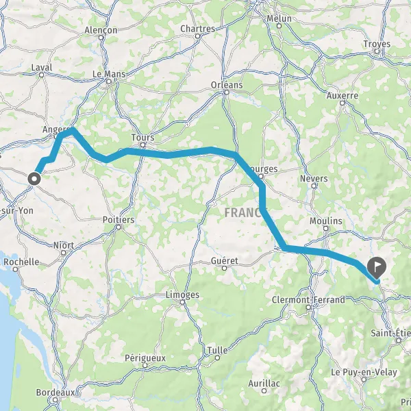 Prendre à droite et rejoindre A85. Continuer sur 205 kilomètres
