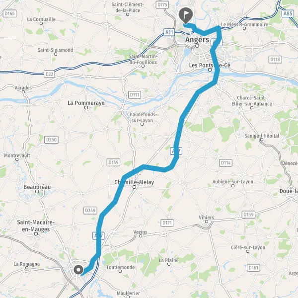 Prendre à gauche et rejoindre A87. Continuer sur 60 kilomètres